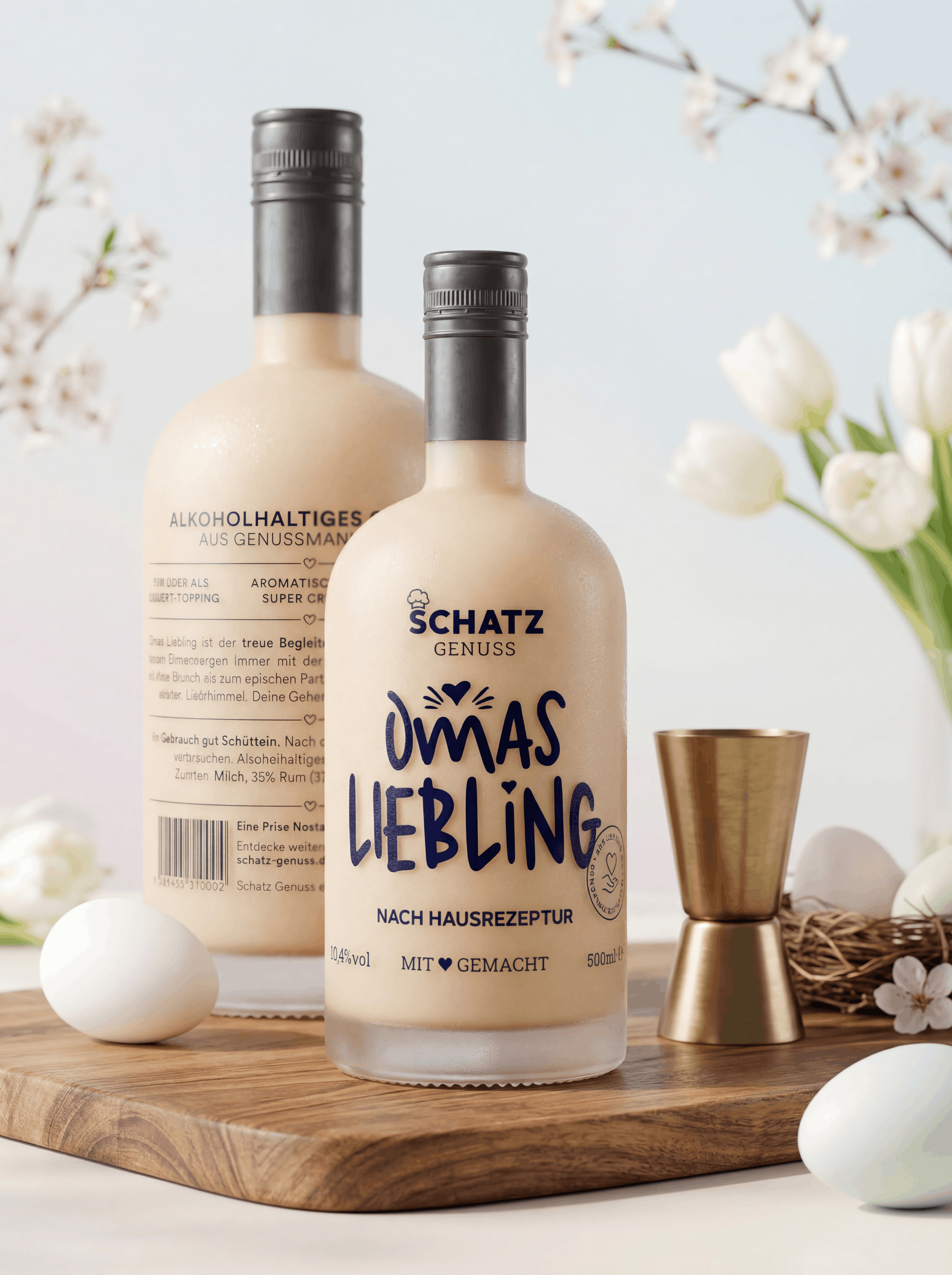 Parallel zum Clubbetrieb: Aufbau von Schatz Genuss ab 2021. Von der Idee bis zur Listung entwickelte Alexander Omas Liebling von Grund auf – Rezeptur, Branding, Vertrieb. Heute regional bei REWE und Edeka gelistet. Ein Produkt, das im Familienbetrieb entstand und im Einzelhandel angekommen ist.